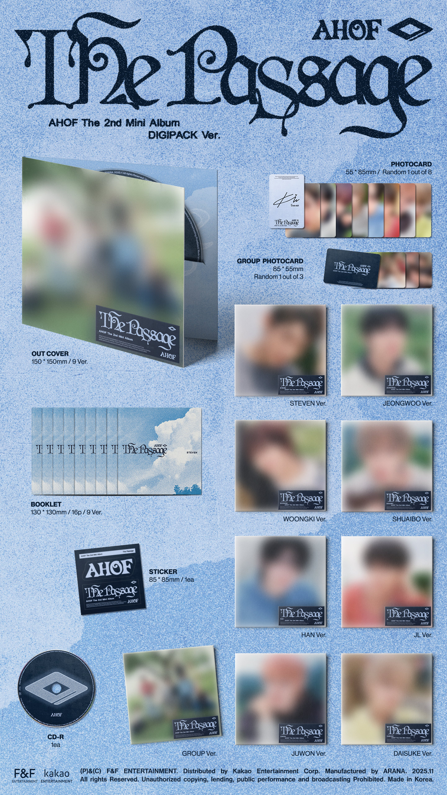 - PHOTOCARD : 55x85mm / 8종 중 1종 랜덤 삽입 (버전 별 이미지 동일)